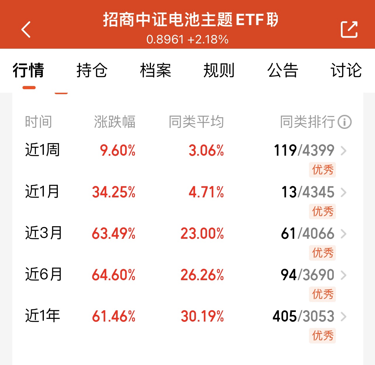 今日市场情绪全面升温,电池赛道也在高景气中持续发力。我近期重点关注$招商中证电池主题ETF联接C$ ,一个月上涨34.25%,近三个月上涨63.49%,它紧密跟踪电池指数,覆盖储能、固态电池、动力电池等多元方向。近年新能源板块经历深度调整,如今估值回到合理区间,正是适合逐步布局、长期持有的阶段。技术突破与产业资本共振,让这个赛道更值得耐心见证。