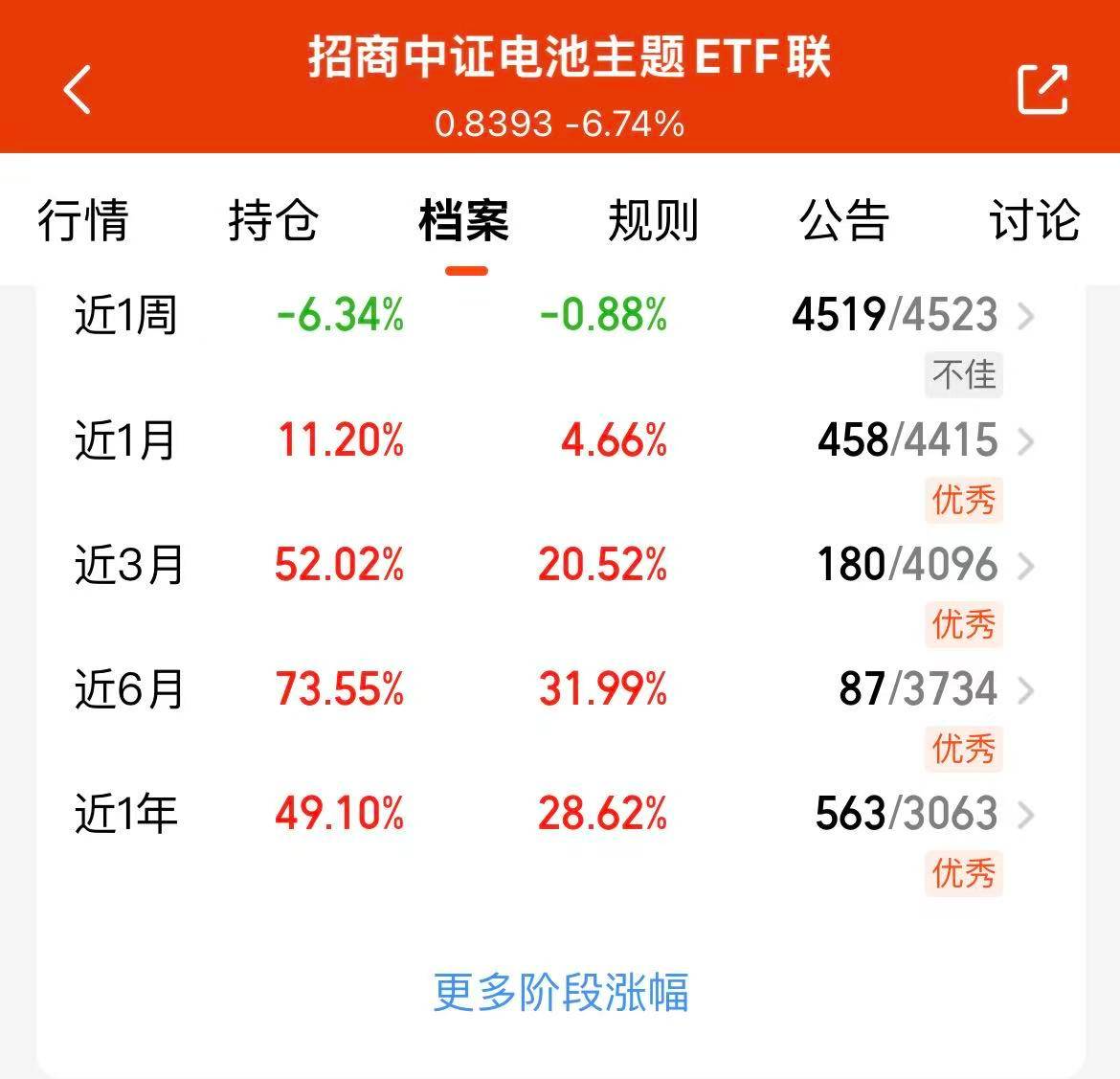 今天大盘震荡调整,全市场下跌的板块超4500家,电池方向也迎来调整,国内锂电产业链景气上行,固态电池产业不断地发展,电池未来趋势明显,很有可能成为未来主线。$招商中证电池主题ETF联接C(OTCFUND|016020)$近三个月涨幅52.02%,业绩出色,固态电池概念占40%+储能概念占60%,我继续看好这个赛道。