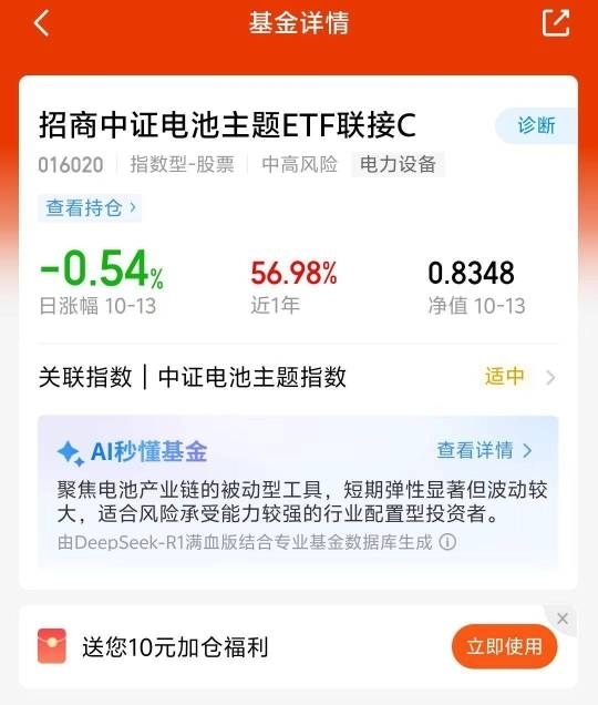 我关注的$招商中证电池主题ETF联接C$,最近三个月涨了50.66%,半年涨了70.26%。这个方向我觉得长期来看挺有潜力的,打算慢慢加仓。铁锂电池的技术路线确实比较领先,加上储能市场的需求在增加,这些因素都让我对电池行业的前景比较乐观。