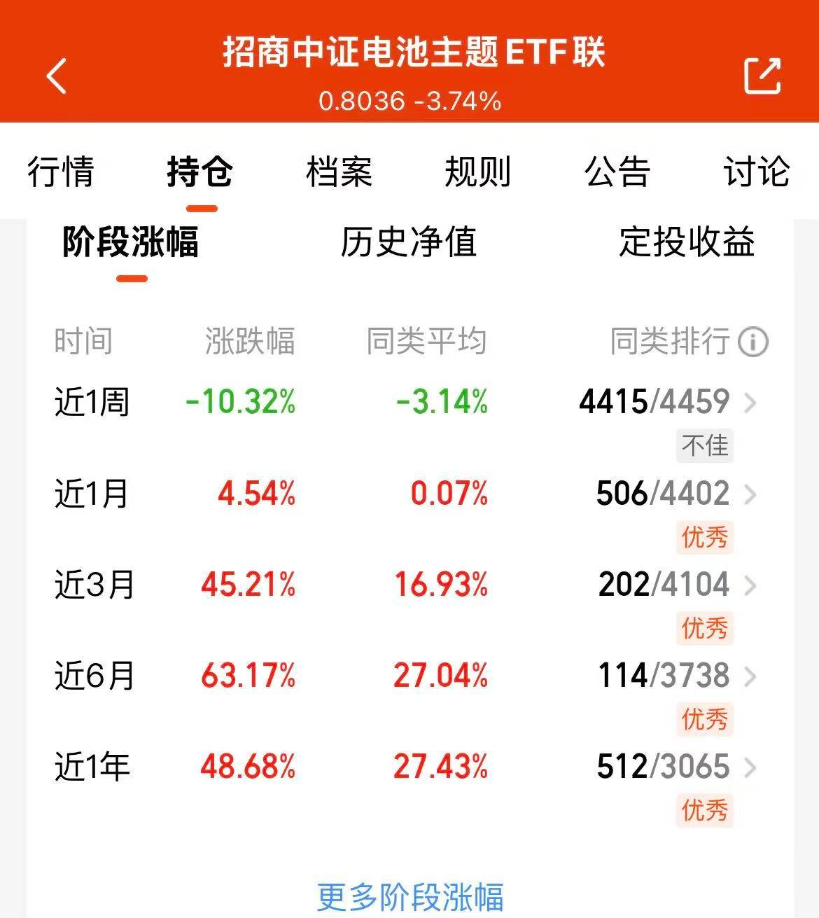 今天大盘高开高走,盘面是比较喜庆的,电池也迎来好转了,固态电池产业不断的发展,卫蓝新能源也完成D+轮融资,电池未来趋势明显,很有可能成为未来主线。$招商中证电池主题ETF联接C(OTCFUND|016020)$是高度集中于电池产业链的,近三个月涨幅45.21%,业绩表现也优秀,我继续看好这个赛道啦!