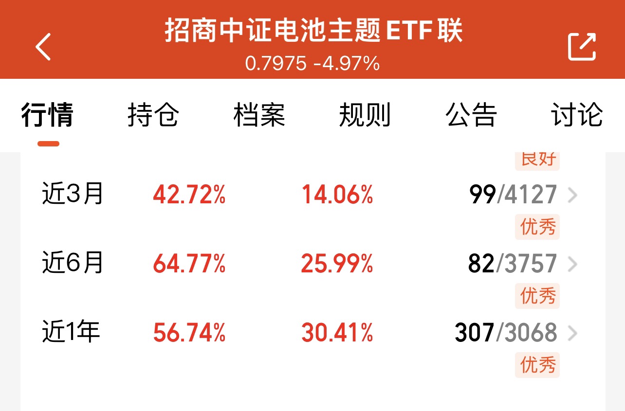 上周电池板块短线回调,我反而觉得是很好的上车机会。近期从技术端到产业端都在释放积极信号:固态电池进入产业化关键阶段,QuantumScape与康宁合作、国内科研团队连出突破,中国科学院、清华等纷纷发布高能密度新成果,技术壁垒正在被攻破。与此同时,资本也在积极入场,卫蓝新能源完成新一轮融资,显示行业信心十足。电池正站在新一轮能源革命的起点,中长期逻辑依旧坚实,技术突破+政策扶持+需求爆发,多重催化下,电池赛道仍有想象空间。招商中证电池ETF联接C近一年收益高达56.74%,我继续坚定看多招商电池ETF联接C,于是趁势加仓布局!