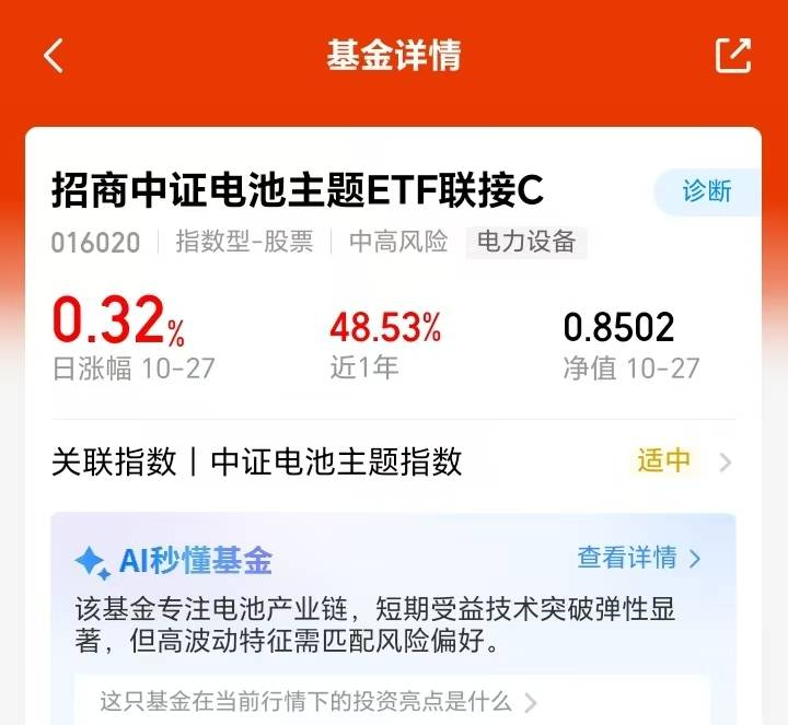 A股今日集体低开后围绕4000点震荡,科技板块整体回调趋势,电池赛道却逆势2连涨,中证电池指数翻红涨1%。三季报显示电池行业量利双升,多家上市公司财报业绩亮眼,随着固态电池等技术突破频现,行业长期成长空间不小呢。$招商中证电池主题ETF联接C(OTCFUND|016020)$今日盘中估值冲高回落,韧性还不错,近三月涨幅48.04%、近六个月涨幅近70%,业绩亮眼。#慢慢投基路 你悟出了哪些投资哲学?##A股盘中突破4000点!下个目标位在哪?#