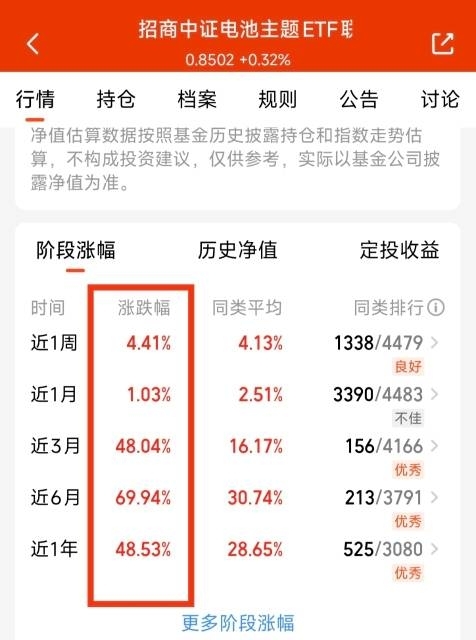$招商中证电池主题ETF联接C$ 这只跟踪中证电池指数指数基金,全面覆盖了电池上下游产业链,而且对比其他电池类指数。固态电池跟储能电池的含比更高,昨天上涨了0.32%,又是做到了稳稳三天连涨。而且,本轮行情来,主要还是固态电池跟储存电池也是更强,即使经过本轮回调,近3月依然上涨了48.4%。涨幅是同类电池基金平均业绩的三倍还多。近半年上涨了69.94%。稳定的超额收益能力强,目前来看,电池板块新一轮上涨已经启动,我坚定看好四季度电池板块的成长表现!