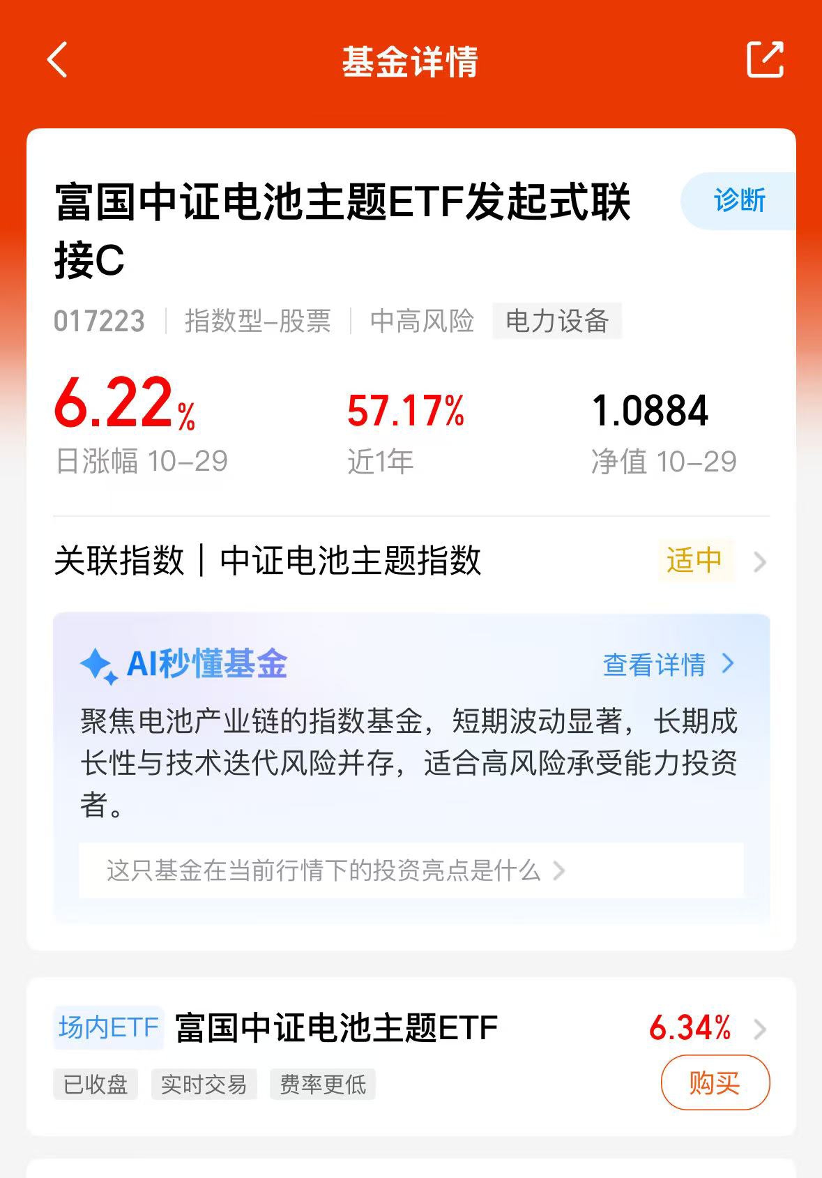 电池板块大涨,我继续拿住$富国中证电池主题ETF发起式联接C$涨了6.22%,现