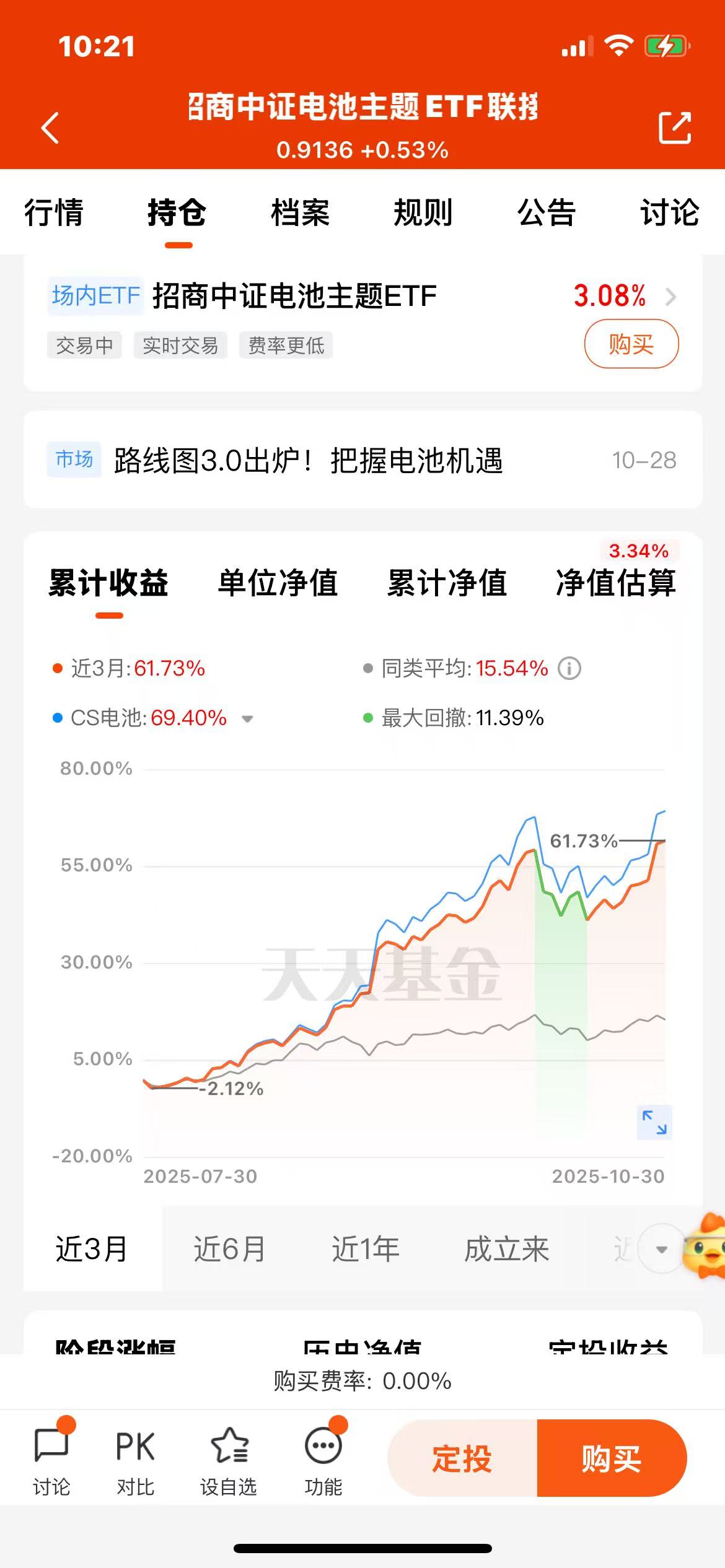 当前中证电池估值上涨快4%$招商中证电池主题ETF联接C(OTCFUND|016020)$近三个月上涨61.73%,也是很强了。