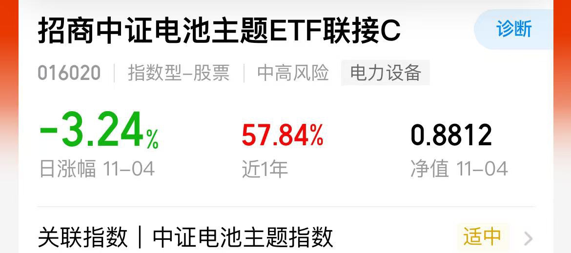 今天权益市场又是震荡的模式,早盘看着个股涨得比跌的多,但是量能缩的比较厉害。前面很火的科技回调了,这会儿煤炭和电池板块倒是领涨的,我更看好$招商中证电池主题ETF联接C$ 这只基金它跟踪板块龙头近三个月涨58.26%,而且电池板块多家公司业绩亮眼,现在位置也不算高,我看好它后面的行情