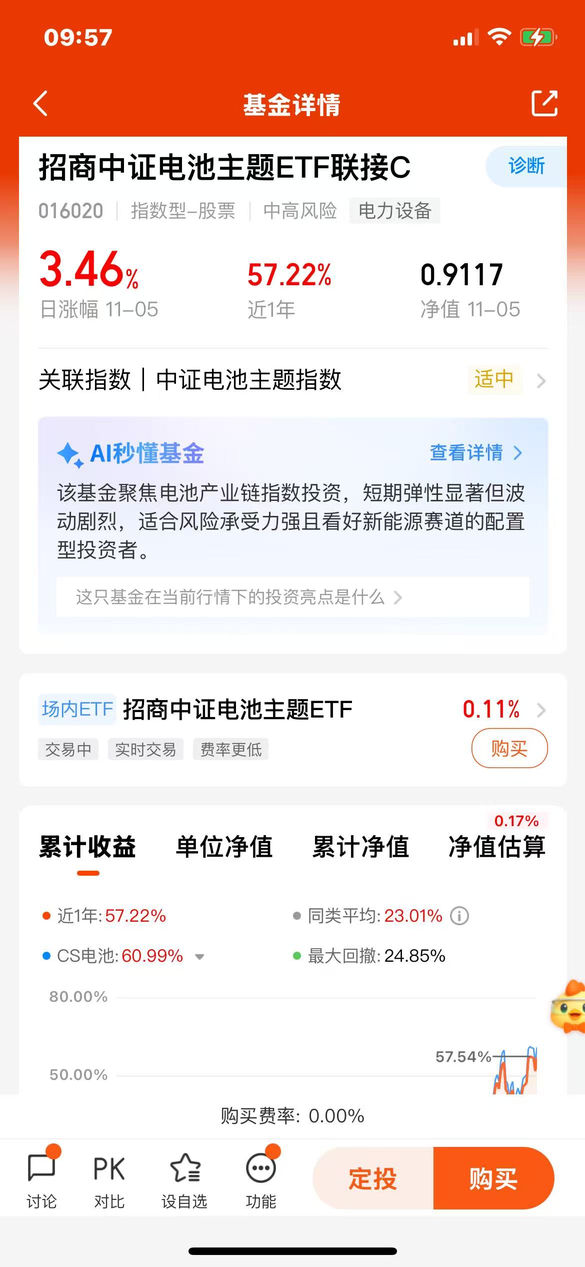$招商中证电池主题ETF联接C(OTCFUND|016020)$昨天上涨3.46%