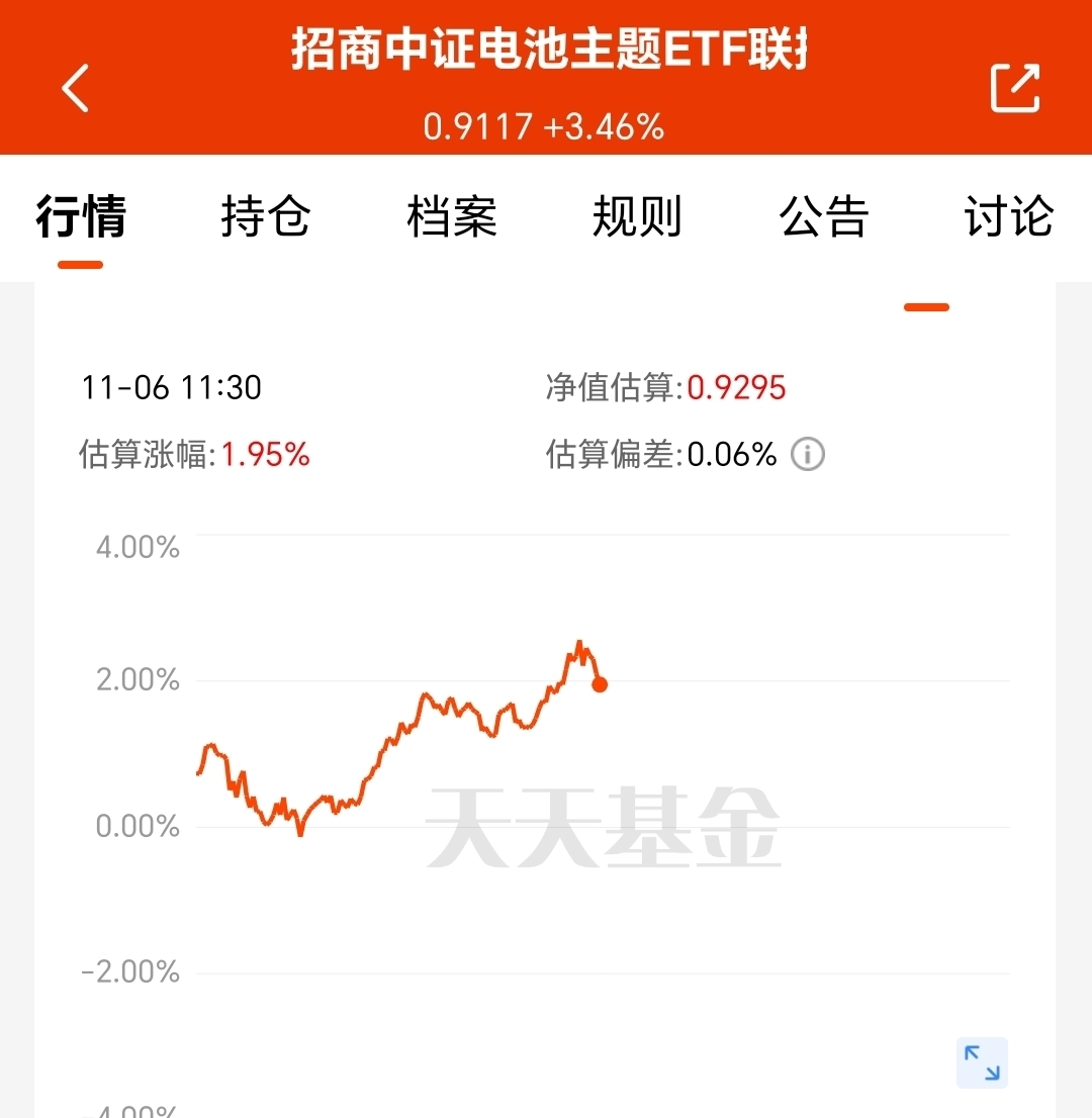$招商中证电池主题ETF联接C$ 昨天大涨三个多点儿,今天截至上午收盘预计上涨近两个点。