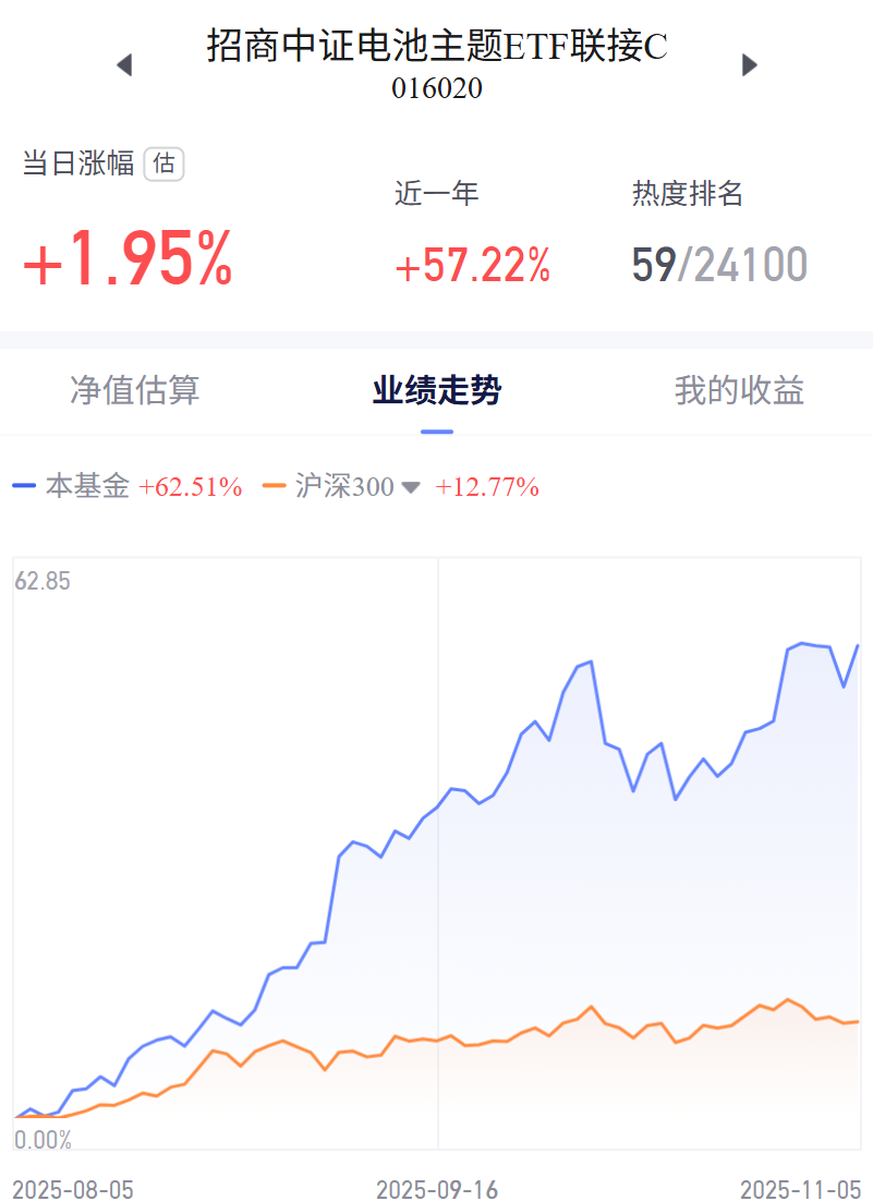 招商中证电池C昨日涨幅3.46%,午盘估值继续上涨1.95%,近一年收益高达57.22%,展现出电池赛道的强劲修复力。近期固态电池核心标的较高点已回调20%-30%,风险释放较为充分,估值更具吸引力。国庆节及之后,人民日报、新华社等权威媒体持续报道电池产业进展,从技术突破到产业落地,都在强化市场信心。电池赛道再度被聚焦,招商中证电池C或将成为新一轮行情中最亮眼的动力引擎。