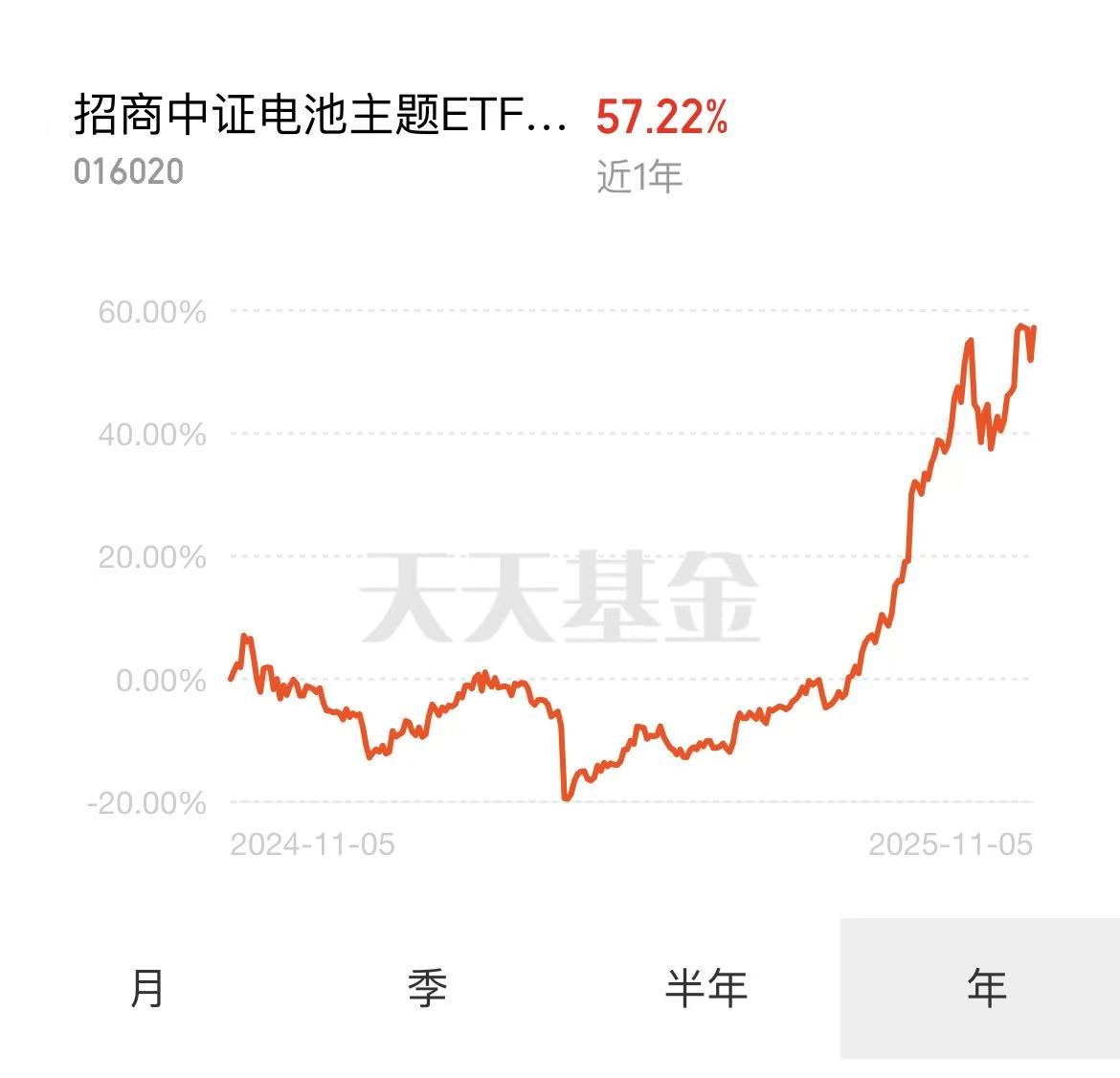 今天大盘迎来反弹,上涨的个股比较多,电池方向也是涨幅的不错呢,连涨啦,真开心。我们国家能源局等多部门明确支持固态电池研发与量产,电池赛道前景广阔,我也是继续看好了。$招商中证电池主题ETF联接C(OTCFUND|016020)$估值上涨2.3%,近一年收益率57.22%,重仓有宁德时代、阳光电源等。