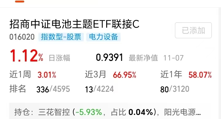 $招商中证电池主题ETF联接C(OTCFUND|016020)$同步走强,上周五上涨1.12%,近三月涨幅66.95%,电池赛道的短期主线逻辑清晰,利好加持下有望延续强势呀。