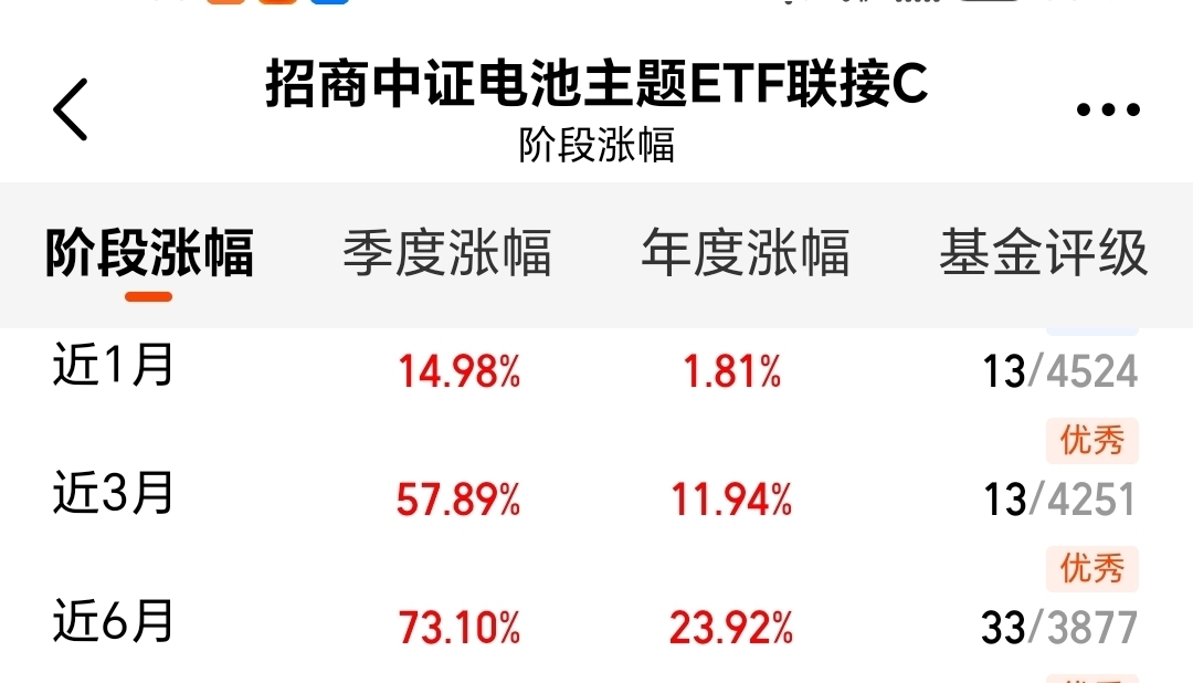 近一个月大A在4000点拉回拉锯,$招商中证电池主题ETF联接C$ 还能大涨近15个点。可见电池板块很受大家亲睐。