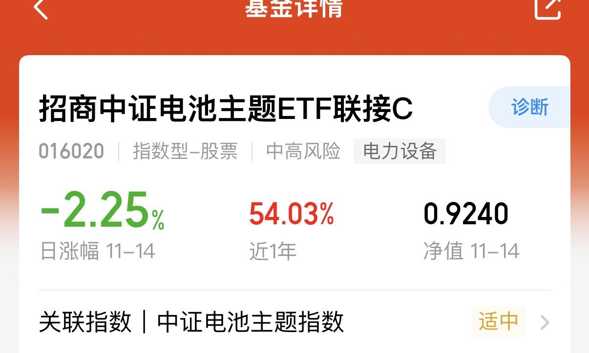 今天大A开盘后波动还可以,不算太大,之前涨得不错的CPo和机器人概念股都在回调,但是一直都在冲高的电池,今天也一直在线走强$招商中证电池主题ETF联接C$ 这只基金主要投于电池产业链近一个月已经涨了14.98%拉长时间来看,各个时间段的业绩都挺不错的,我个人比较看好后面的方向