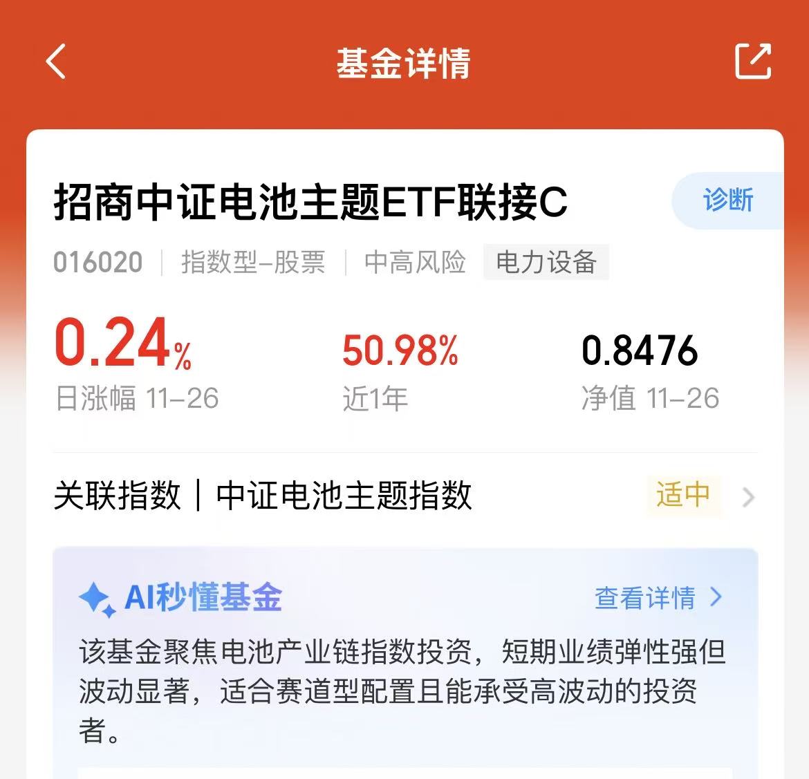 今天大盘继续上涨啦,电池赛道继续吃肉,当下新能源汽车销量增速超20%,储能招标规模创新高,固态电池2030年市场规模将破5000亿元,电池方向还是很不错的。$招商中证电池主题ETF联接C(OTCFUND|016020)$估值上涨1.7%,持仓有宁德时代、阳光电源等核心企业,年化收益率50.98%,长期业绩优秀。#今年你的投资目标达成了吗?# #3800点的A股值得加仓吗?# $嘉实中证电池主题ETF发起联接A(OTCFUND|016566)$