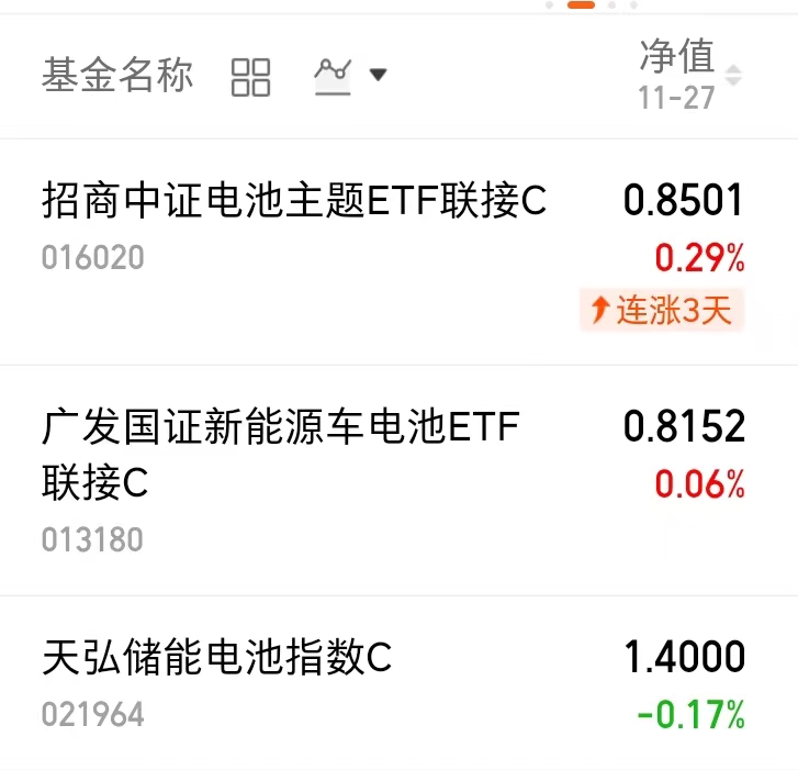 $广发国证新能源车电池ETF联接C(OTCFUND|013180)$昨天上涨0.06%