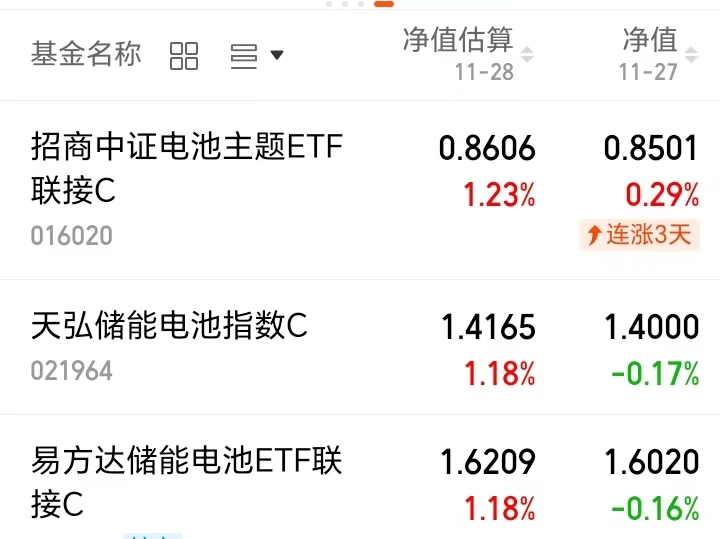 昨日新能源电池板块冲高回落了,今日再度反弹,表现不错。电池板块有技术突破和政策支持,后续行情还是比较看好的。看看昨日相关基金表现情况: