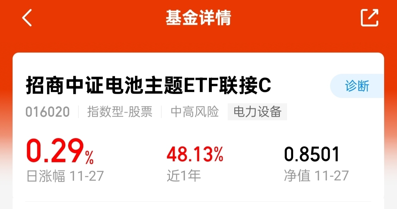 招商中证电池主题ETF联接C(OTCFUND|016020)昨天小涨0.29%
