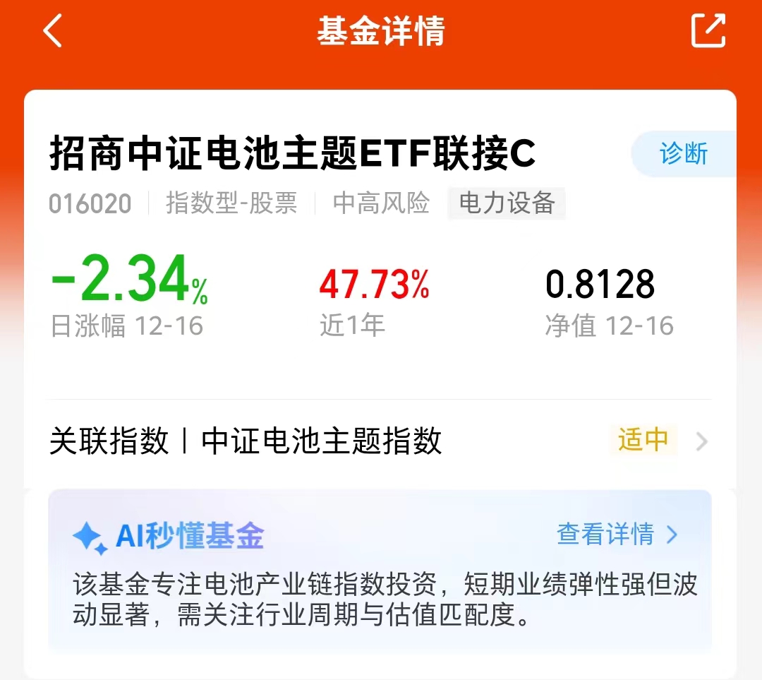 股市行情调整了两天,终于守得云开见月明,今天大盘反弹上涨,其实调整行情也是正常的,电池板块经历了2023年-2024年深度调整后,正呈现修复回升态势,在产能出清等多重利好催化下,电池板块正迎来技术突破与需求爆发上涨空间大,$招商中证电池主题ETF联接C(OTCFUND|016020)$业绩能力强,近一年上涨47.73%,可以关注一下,刚好这两天调整过后性价比更高了。