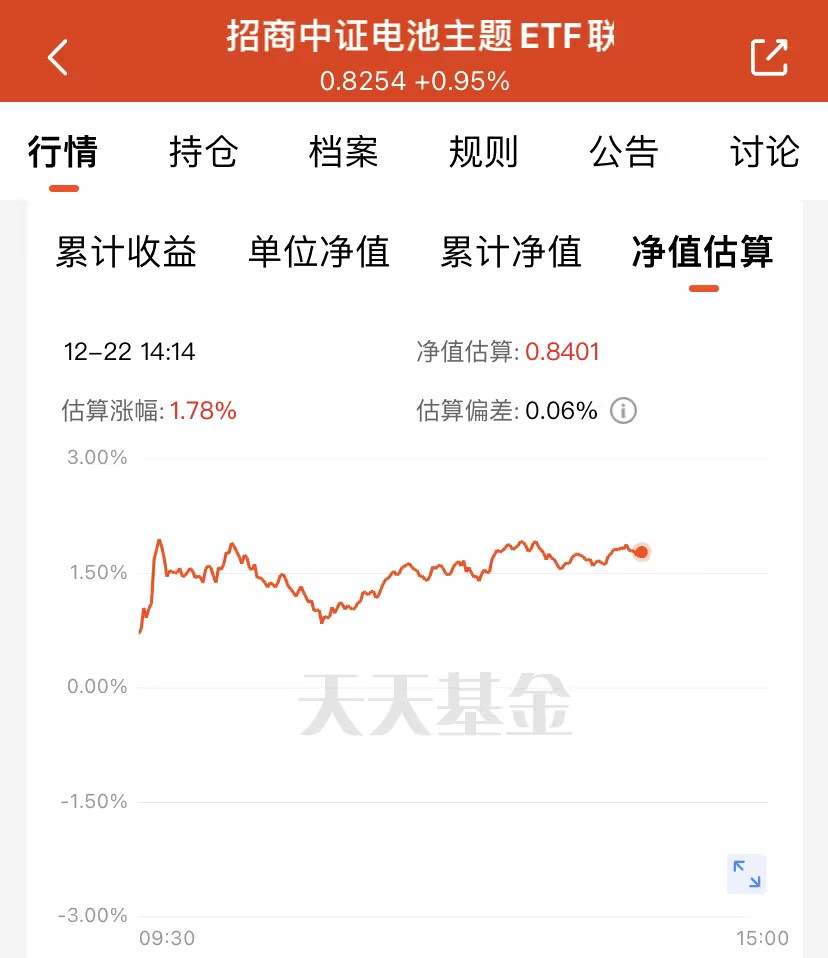 市场全线走强,新能源电池板块反弹力度拉满。行业明年预计还能保持 25%-30% 的增长,向上空间依旧充足。$招商中证电池主题ETF联接C(OTCFUND|016020)$全面覆盖电池上下游产业链,对比同类产品,固态电池和储能电池的占比更高。本轮行情正是这两个方向领涨,基金表现自然亮眼。即便经历了本轮回调,近 6 个月涨幅仍达 60.52%,是同类电池基金平均业绩的两倍多。电池板块新一轮上涨已启动,我顺势布局了。