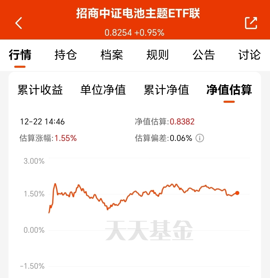 截至发文前$招商中证电池主题ETF联接C$ 预计上涨1.55%。