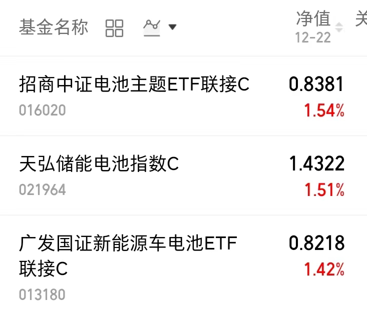 $天弘储能电池指数C(OTCFUND|021964)$昨天上涨1.51%$广发国证新能源车电池ETF联接C(OTCFUND|013180)$昨天上涨1.42%