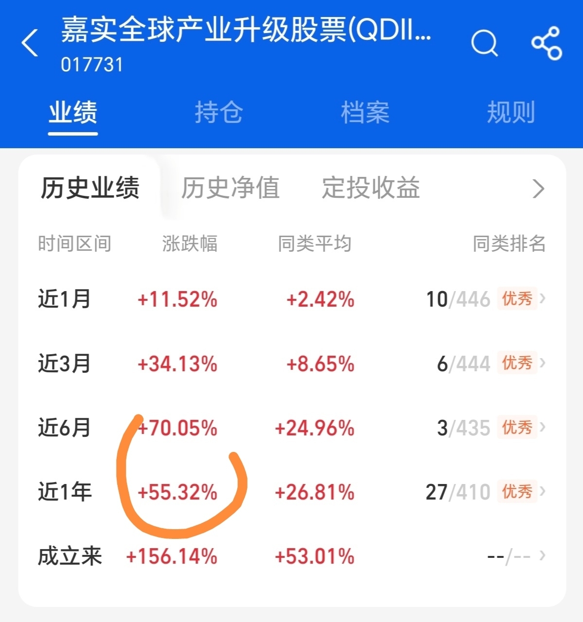 美股年底前将迎来一波全面上涨行情,各类风险资产可望同步走高,受惠于多项市场利多。 美股又创新高,期货也是涨的,继续嗨了, $嘉实全球产业升级股票(QDII)C$$嘉实全球产业升级股票发起式(QDII)C$ 持仓包括英伟达、微软、谷歌等全球科技龙头,也有超威半导体、芯源系统、中芯国际等芯片相关企业,覆盖AI算力、芯片设计、云计算等领域。 近一年收益55.32%,昨日涨2.53%,近一月涨11.52%,同类排非常优秀,美股继续向上趋势,继续反弹了
