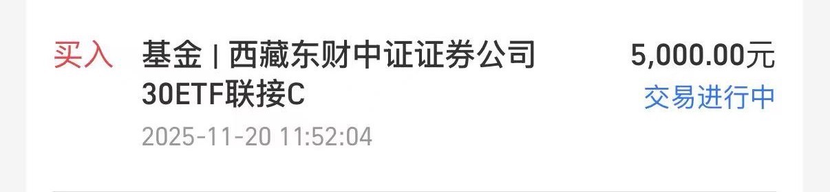 证券板块作为牛市旗手,是牛市行情启动的一个信号,而目前A股市场的成交量远超过去,这也会使得证券公司的业绩大幅改善,在业绩改善的预期驱动下,证券板块未来肯定会带动市场上涨走强,目前证券板块估值偏低,秋秋打算逢低开始布局埋伏证券板块,耐心等待它上涨。西藏东财中证证券公司30ETF联接C是一个指数型证券板块基金,该基金精选30家证券龙头公司作为其成分股,业绩确定性更强,同时该基金前三大持仓成分股占比超40%,龙头股持仓比例更为集中,因此该基金上涨弹性比其他证券基金更好,今天秋秋建仓一笔,买入5000元$东财证券30C$ 。