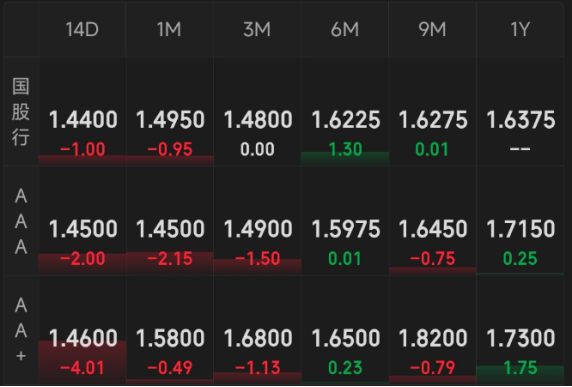 同业存单:多云,涨跌互现。