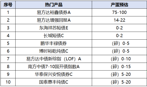 热门产品产蛋预估:(根据16:00行情预测,仅供参考,以实际产蛋为准)