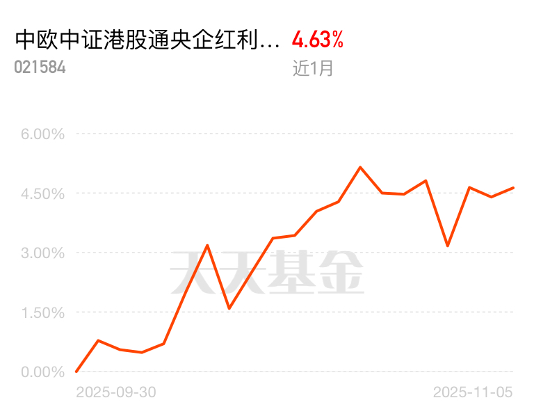 港股通市场近期表现活跃,资金纷纷涌入高股息、低估值的标的,央企板块成了核心热点。中欧中证港股通央企红利指数(QDII)C近1个月收获4.63%收益,紧跟指数走势,让投资简单又靠谱。$中欧中证港股通央企红利指数发起(QDII)C$