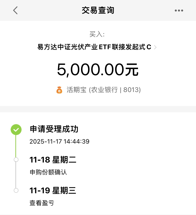 热点题材的超跌反弹,只要没突破新高,大概率没持续性,很可能是一日游行情。我更关注滞涨板块,今天光伏领跌,其实行业还有补涨机会。易方达光伏产业联接 C 业绩表现不错,而且光伏板块未来仍有较大上涨空间,逻辑没变化。我一直看好这个方向,后续会继续重点关注,有合适机会就布局。
