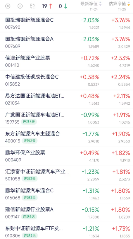 新能源行业基金估值盘后快报,收益全览,优劣自明
