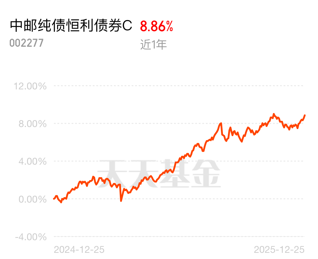 搭配债基果然是对的策略,$中邮纯债恒利债券C$ 年收益率八个点,更别提昨天28个蛋了