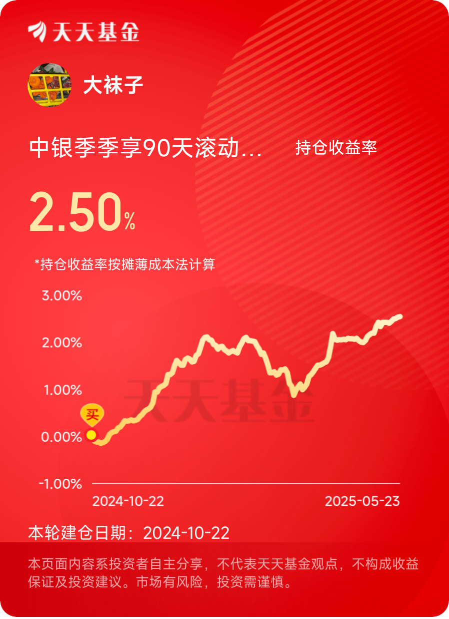 $中银季季享90天滚动持有中短债债券发起C$ #晒收益#