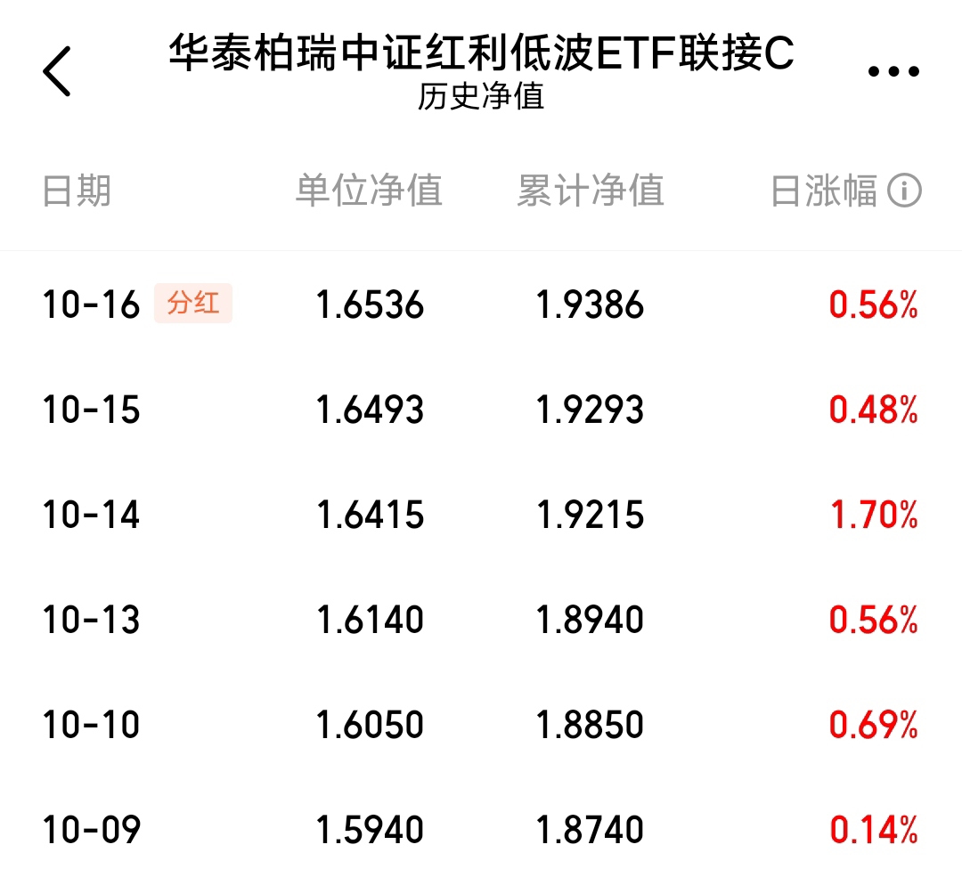 $华泰柏瑞中证红利低波ETF联接C$都七连阳了?今天估值还涨0.35%,这表现想