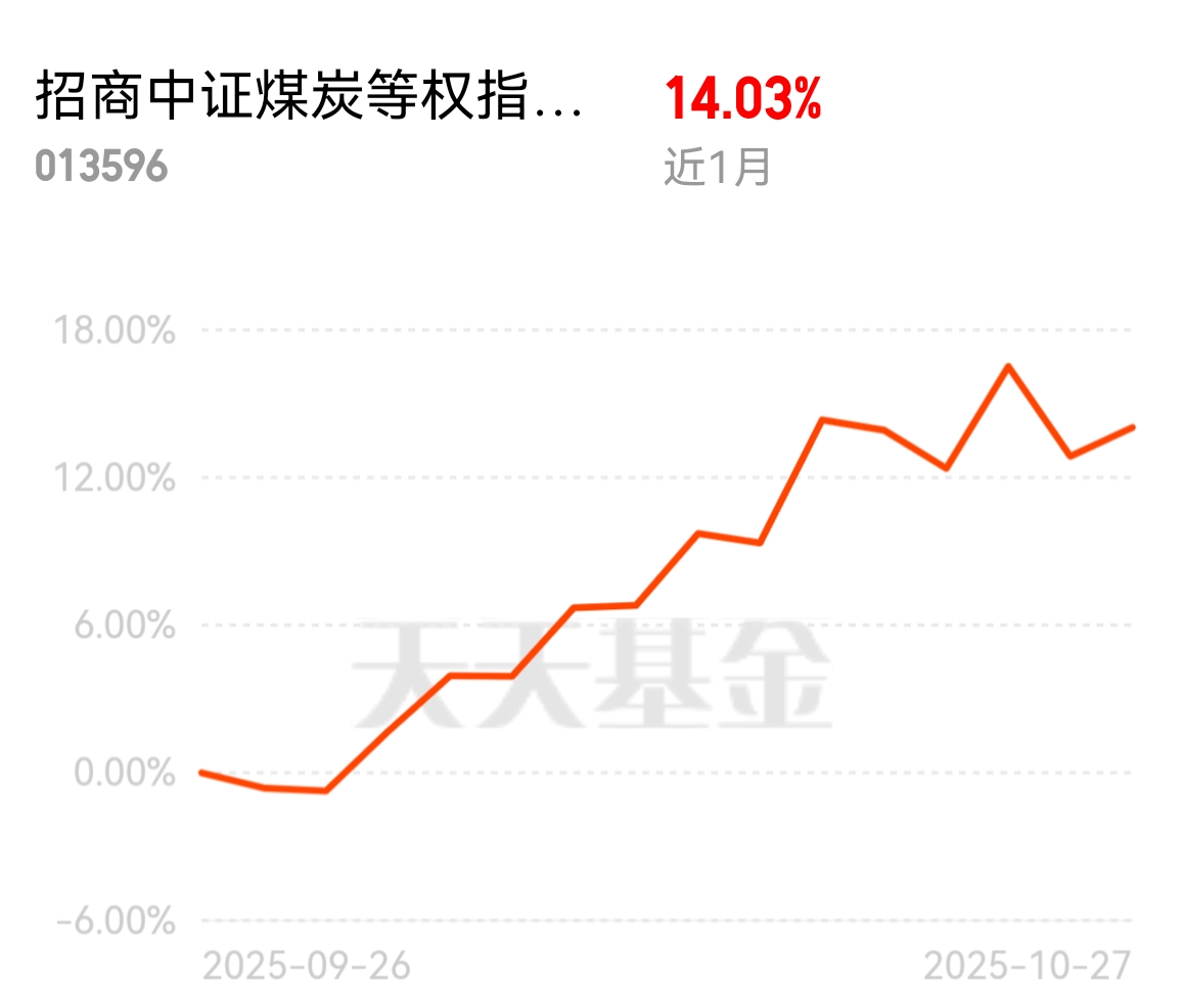 煤炭板块今天跌超1%,调整不怕。11月供暖启,用煤需求升。招商中证煤炭等权指数C近1个月14.03%,回调加仓正合适。