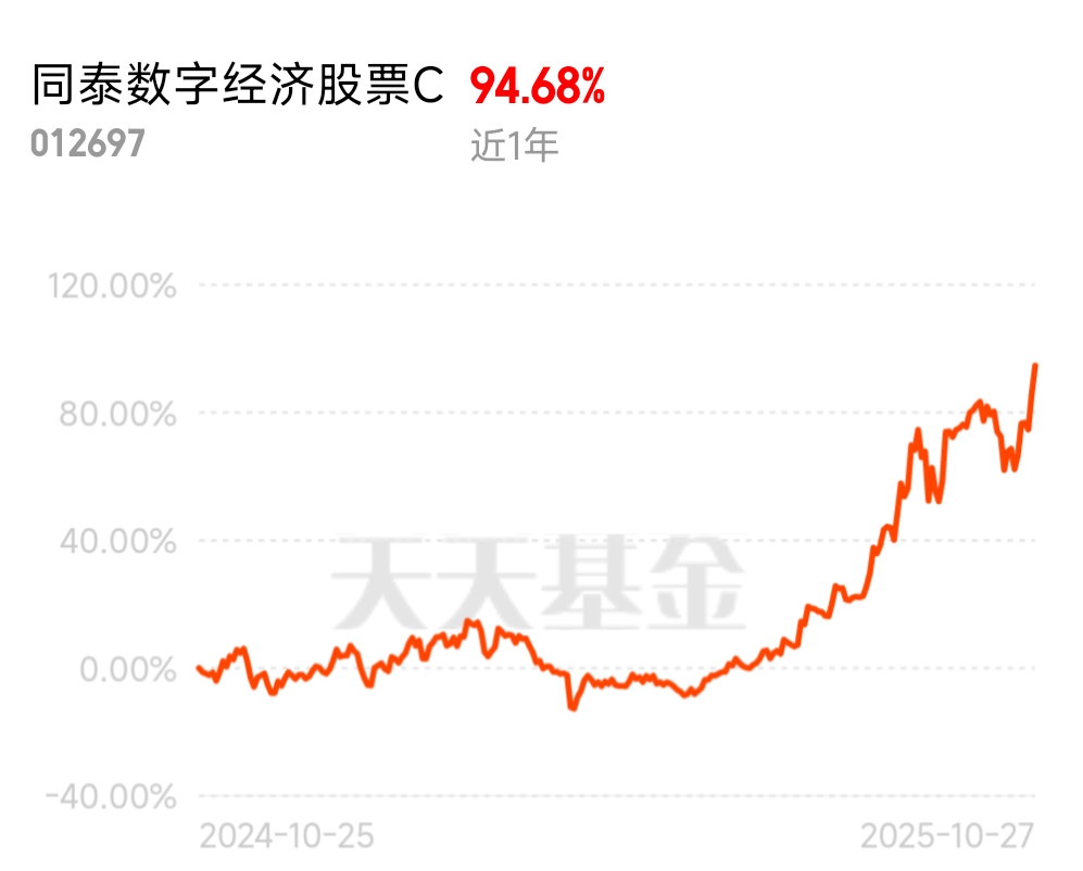 同泰数字经济C太牛啦!在众多基金中排名前百分之1,是科技型基金的佼佼者。近一年收益率高达94.68%,远超同类。专注算力、存储芯片等前沿概念,布局算力产业链,潜力无限,值得拥有!$同泰数字经济股票C$