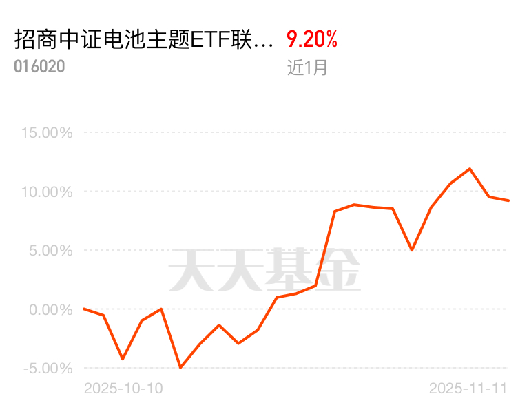 现在全球都在布局电池技术,行业发展前景广阔,招商中证电池主题ETF联接C近一个月涨9.20%,近一年直接拿下收益第一,昨天大盘波动它跌得最少,抗跌赚钱双在线。$招商中证电池主题ETF联接C$