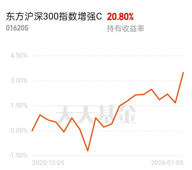 今天沪深300指数顺利飘红,权重股扛起上涨大旗,市场整体表现亮眼,给盘面注入了一剂强心针。$东方沪深300指数增强C$