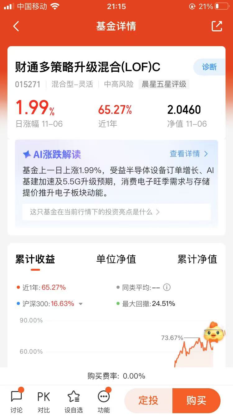 还有个小技巧,就是给投资留足 “容错空间”。我买财通景气甄选的时候,没想着一把梭哈,而是分批建仓,每次基金又大跌我就会选择布局。这样做的好处是,就算买在阶段性高点,后续的定投也能拉低平均成本,减少短期套牢的压力。而且我从一开始就没把预期拉满,知道偏股基金不可能一直涨,38.97% 的收益率已经超出了我的预期,所以现在就算市场回调几个点,我也不会慌。另外,我会定期看基金的季度报告,不是看短期收益,而是看基金经理的策略有没有变,持仓的公司基本面好不好。只要策略没跑偏,标的没问题,就安心拿着,这种 “心里有数” 的感觉,才是不慌不忙的底气。