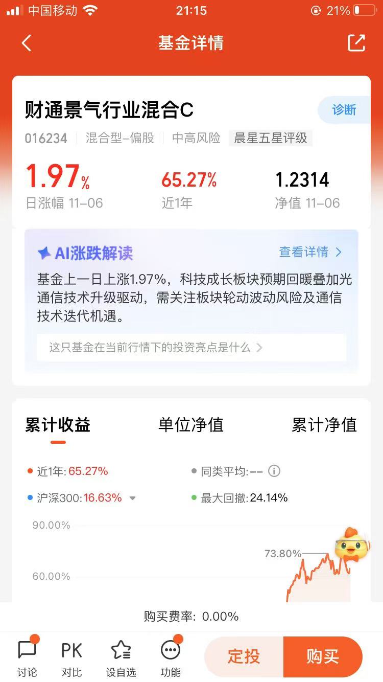 就像我持有的财通景气甄选,它不是那种暴涨暴跌的基金,但能跟着产业趋势稳步上涨,这种 “慢一点但稳一点” 的收益,反而让我更踏实。找到自己的风险承受能力,选对契合自己风格的基金,再用合理的仓位和定投策略缓冲波动,才能在市场里找到那个让自己不慌不忙的支点。@财通基金