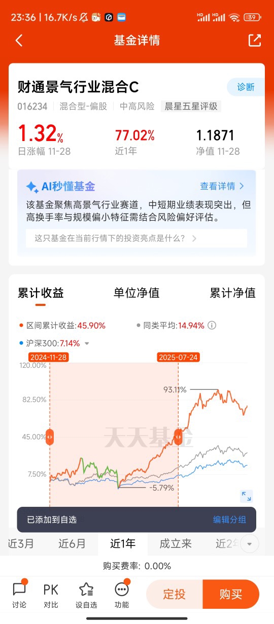 在追求风险与收益平衡的征程中,精选优质投资标的无疑是关键一环。财通景气行业混合C的基金经理沈犁,拥有清华大学硕士学历,深厚的学术背景为其投资决策奠定了坚实的基础。他凭借丰富的投资经验,擅长运用“景气行业 + 精选个股”的独特策略,深入挖掘具有长期成长潜力的优质企业。该基金近一年收益率高达58.96%,在同类基金中表现卓越,这充分彰显了其精准的行业布局和出色的个股选择能力。