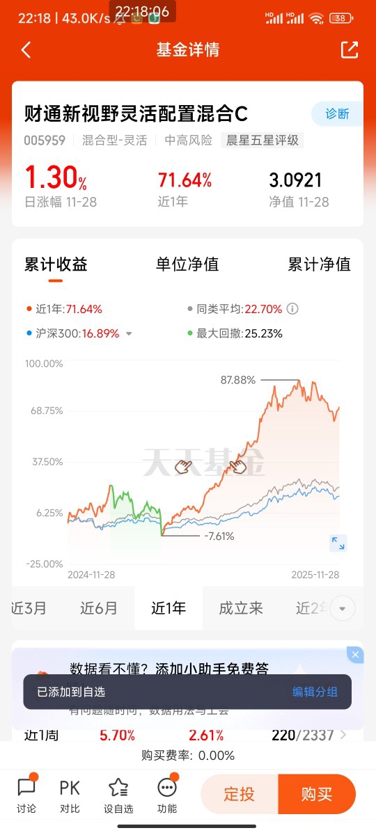 这种比例限制并非简单的数字约束,而是从制度层面划定了风险敞口的上限。截至2025年11月29日,该基金规模为0.76亿元,近一年收益率达77.02%,而近一月波动为-7.03%。这种业绩表现与波动特征的反差,恰恰体现了“收益向上、风险可控”的平衡逻辑。