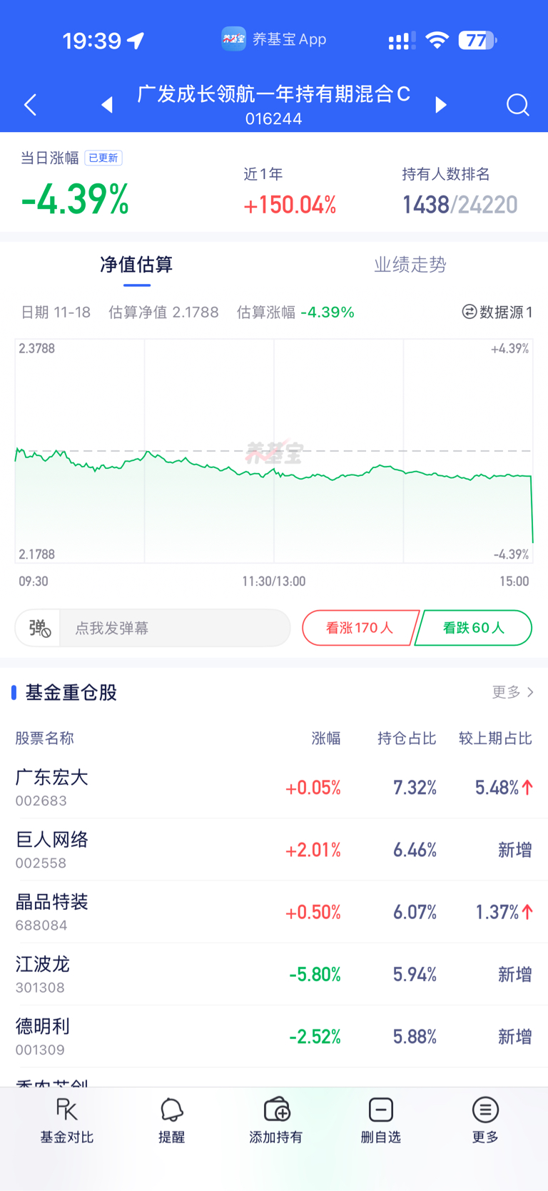 $广发成长领航一年持有混合A(OTCFUND|016243)$ 跌4.39,早晚得还回去的