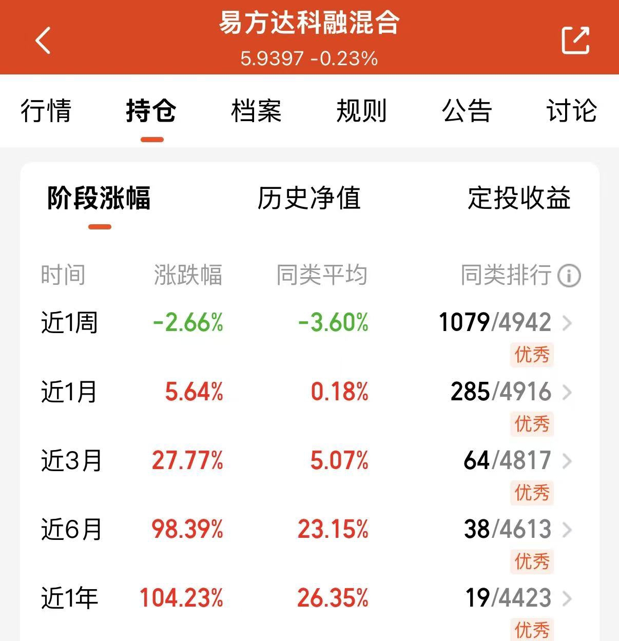 大盘近期反复横跳太磨人,今儿科技又掉链子,热点轮动速度是真快得跟不上。追高风险太高不划算,我偏好均衡配置的基金,易方达科融兼顾科技赛道,新能源、军工等核心领域也能同步把握,虽有震荡但走