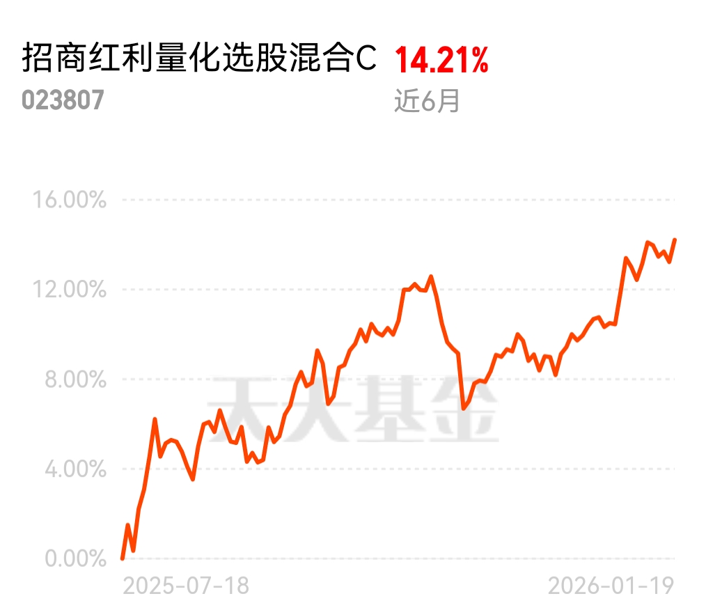 量化选股基金优势凸显,红利风格强势领跑市场,招商红利量化选股混合 C 表现超赞!近 6 月收益 14.21%,近三个月大幅跑赢,超额收益近 10%,今日估值也是红的,做底仓安心又靠谱。$招商红利量化选股混合C$