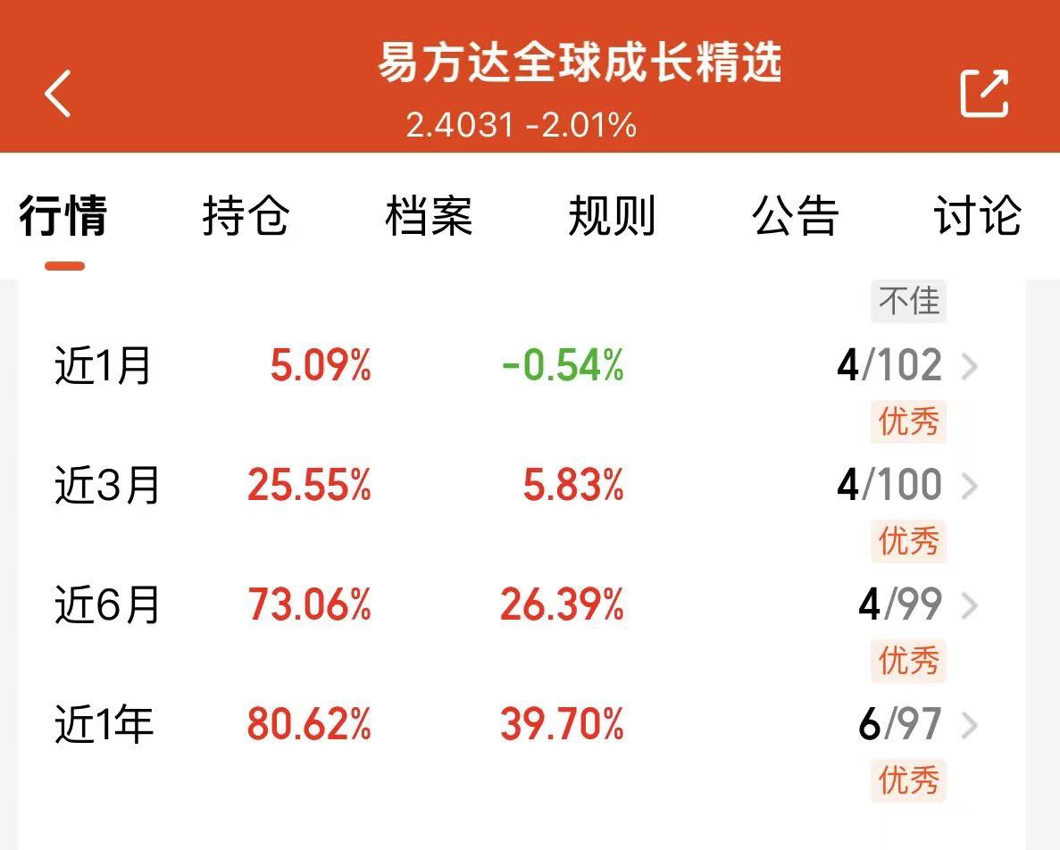 这只易方达全球混合基是同类里的“常青树”,长期第一不说,净值一路向上还波动小。全靠基金经理调仓够灵活:一季度提前布局港股赚估值修复的钱,二季度立马跟上美股AI算力风口,美股震荡时又快速收缩,收益稳稳当当没缩水。
