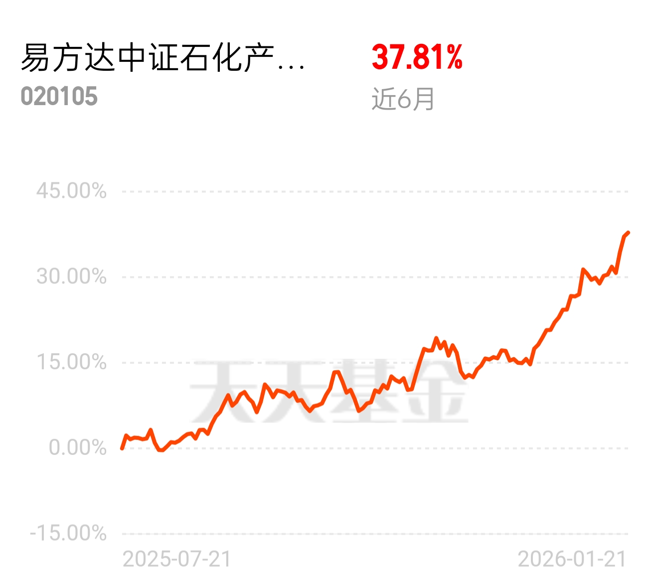 OPEC + 暂停一季度增产,油价底部支撑牢固,石油天然气领涨超稳健,易方达中证石化产业 ETF 联接发起式 C 近 6 月 37.81%,三桶油 + 细分化工机会都想抓住,买石化产业放心$易方达中证石化产业ETF联接发起式C$