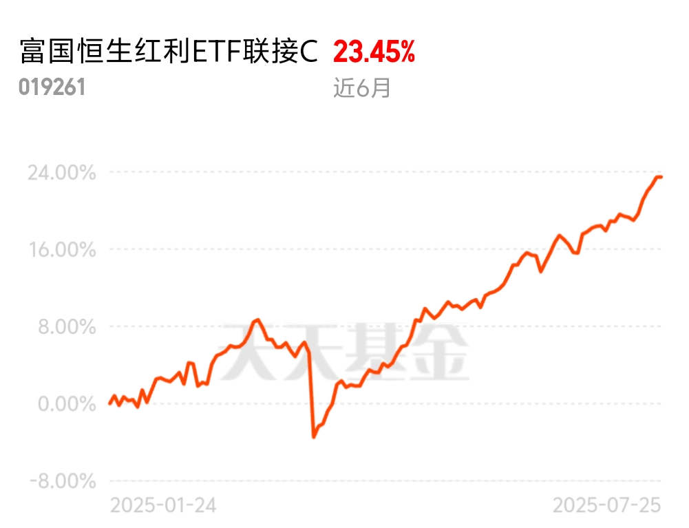 市场分化之下的投资利器!富国恒生红利 ETF 联接 C 近一周涨 3.20%,近三月涨 16.91%,近一年涨 40.81%,持续创造超额收益。红利资产抗风险、收益稳,作为长期底仓,为投资者提供稳健的收益来源,开启财富稳健增长新征程。