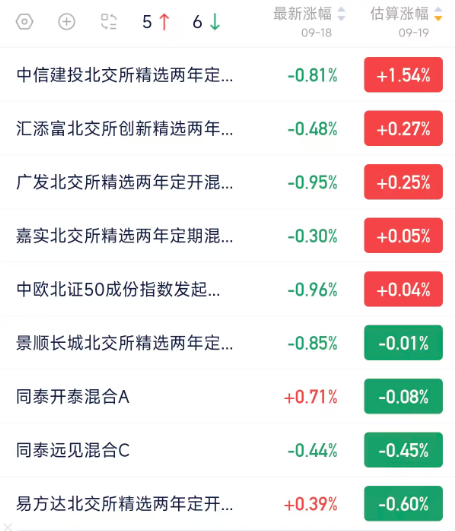 北证基金估值午间检阅,快捷查看涨跌,甄选真金
